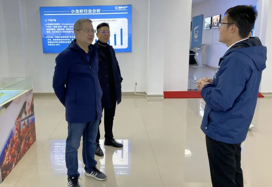 楊建安一行先后考察調研了湖北新力大風車現代農業科技有限責任公司、國聯(益陽)食品有限公司,參觀了小龍蝦加工廠和小龍蝦種繁基地,詳細了解小龍蝦產品原料進場卸貨、分揀、清洗、加工成熟、去殼、成品包裝、倉儲入庫、發貨等生產全過程,并就小龍蝦產業鏈發展狀況及業務的深度合作進行探討。
