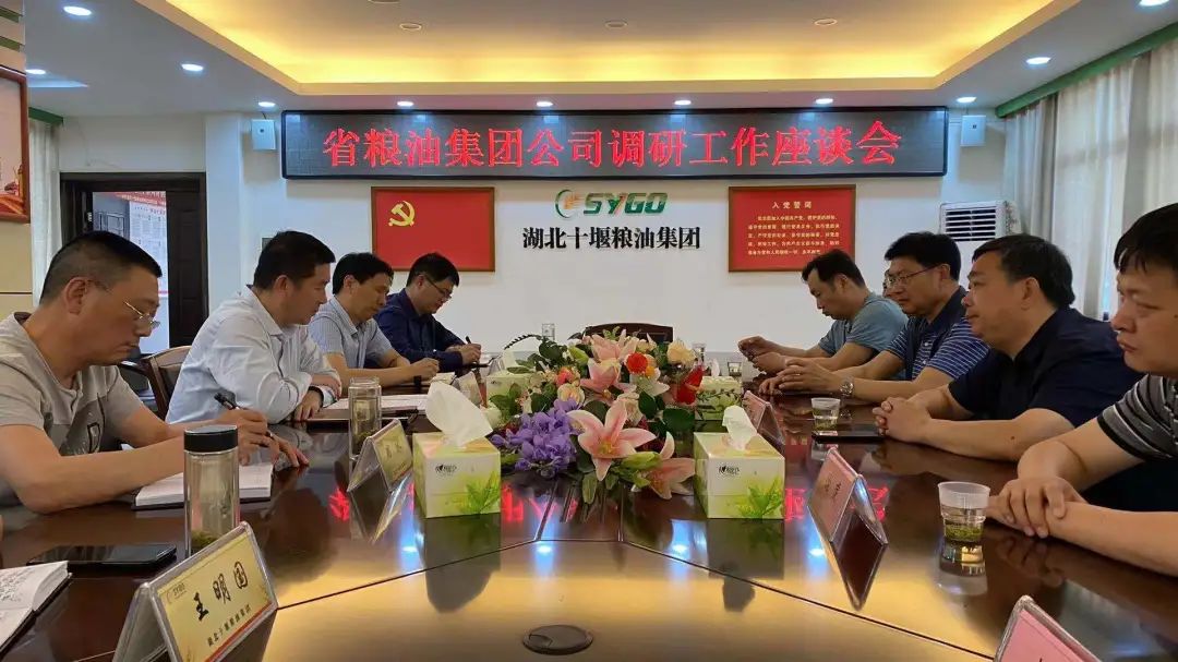 5月18日,紀道斌一行拜會十堰市國資委副主任王秋實,雙方就強化政企合作推動糧食產業發展進行了交流探討。隨后參觀調研湖北十堰糧油集團旗下的中心儲備庫,湖北十堰六里坪國家糧食儲備庫,湖北十堰糧食現代物流中心,實地參觀了糧食儲備保管、智慧糧庫建設成果。并與十堰糧油集團黨委書記、董事長、總經理吳高波及全體班子成員進行座談,就糧食收購、倉儲、加工、銷售等業務環節及業務合作展開交流并達成共識。