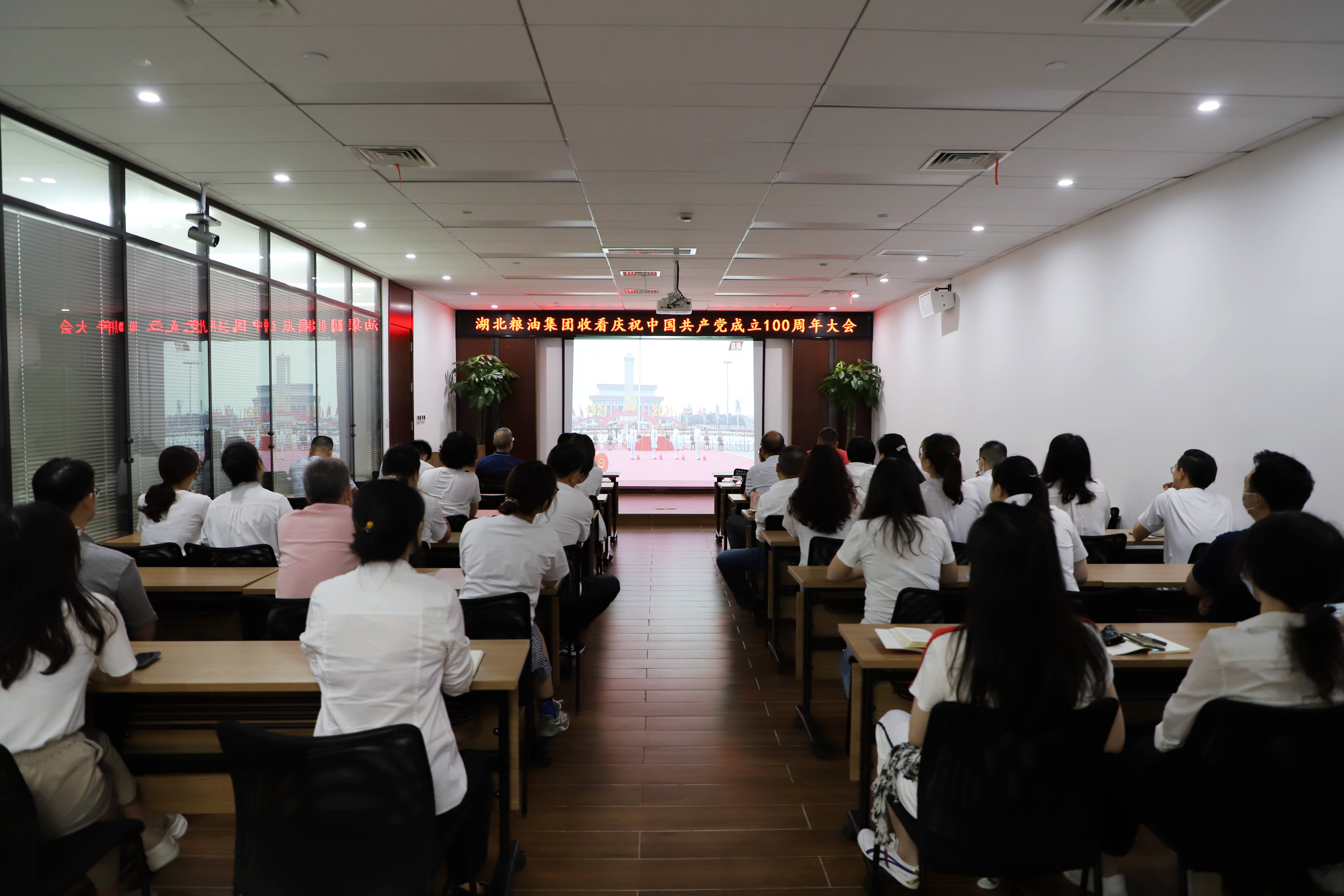7月1日上午8時,慶祝中國共產黨成立100周年大會在北京天安門廣場隆重舉行。中共中央總書記、國家主席、中央軍委主席習近平出席大會并發表重要講話。湖北省糧油集團組織全體黨員干部集中收看大會實況,共慶中國共產黨百年華誕。